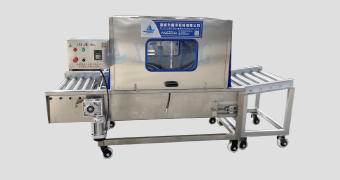 將消毒液體進(jìn)行離分子霧化后輸入到霧化室,箱體經(jīng)過(guò)霧化室時(shí)周身被霧化后的消毒液覆蓋從而達(dá)到消毒殺菌的效果,該設(shè)備配合消毒液對(duì)物品外包裝進(jìn)行消毒滅菌。